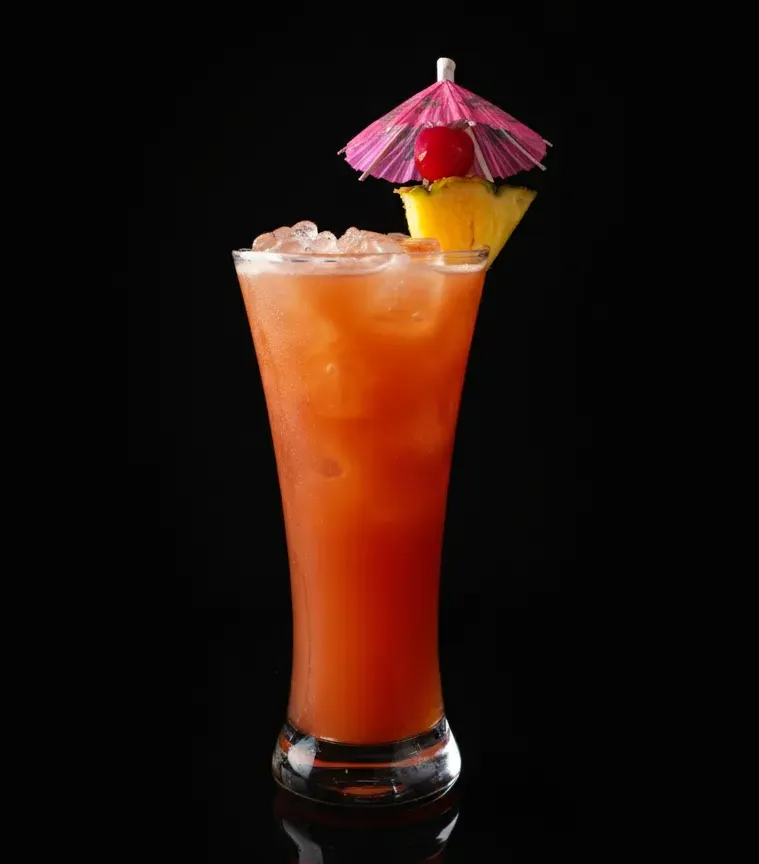 Gin, brandy de cereza, triple sec, Grand Marnier Cognac, granadina, piña (160)