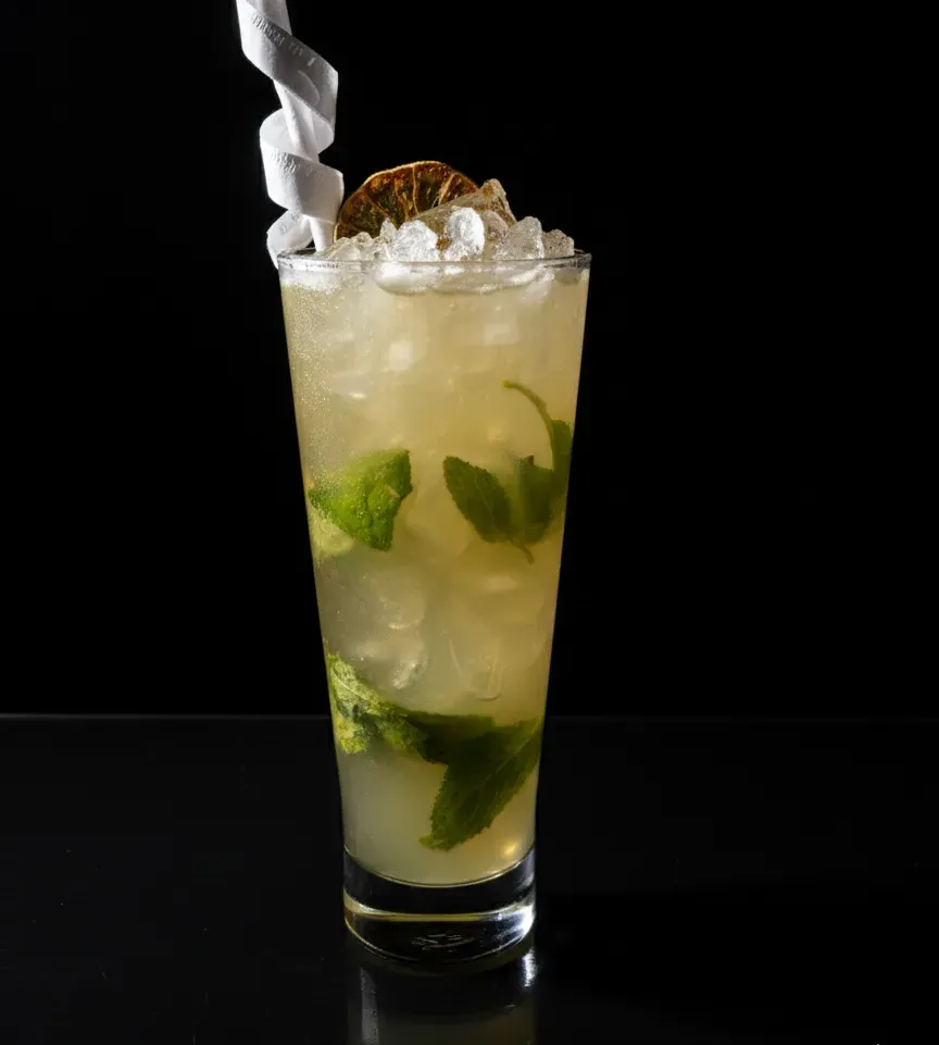 Ron blanco, limón, hojas de menta, sirope, soda (109)