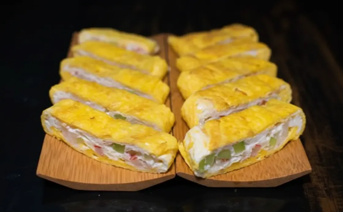 ** Enrollado de huevo con surimi y pepino (109)
